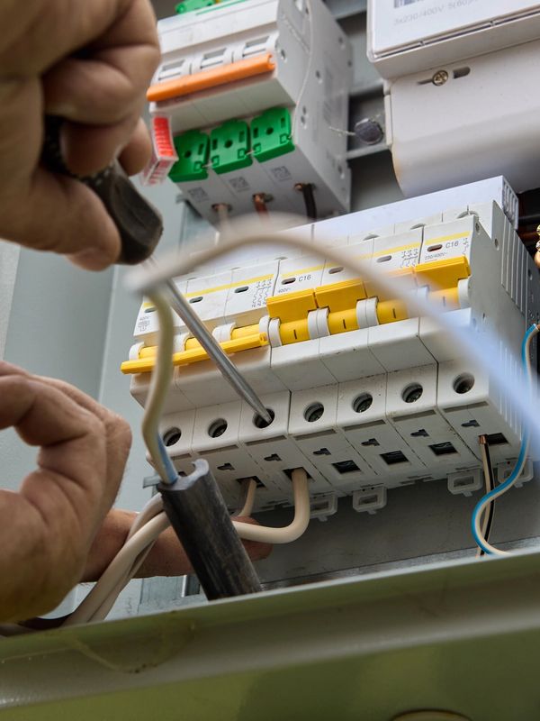 Problēmu novēršana elektroskapī: Bojātu automātu nomaiņa, savienojumu pievilkšana, marķējuma atjaunināšana.